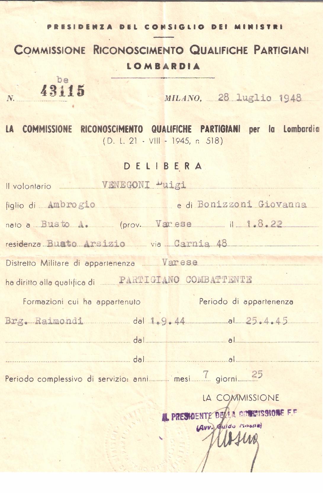 Questo sito vuole essere un ricordo e riconoscimento a Venegoni Luigi,un uomo che, come tanti della sua generazione, ha "vissuto"; ed alle sue opere. Nasce da un'idea di  Maurino (pronipote) con ausilio di Luigino (nipote)....con l'intento di  farlo conoscere e per ricordo a chi l'ha conosciuto. Tutto quello che ha avuto dalla vita l'ha conquistato con i suoi sacrifici.... il suo testamento olografo termina con questa frase:" Voglio far presente che non ho avuto nessuna eredità dai miei predecessori. I miei genitori mi hanno lasciato l'insegnamento di onestà e di amore per il lavoro......"